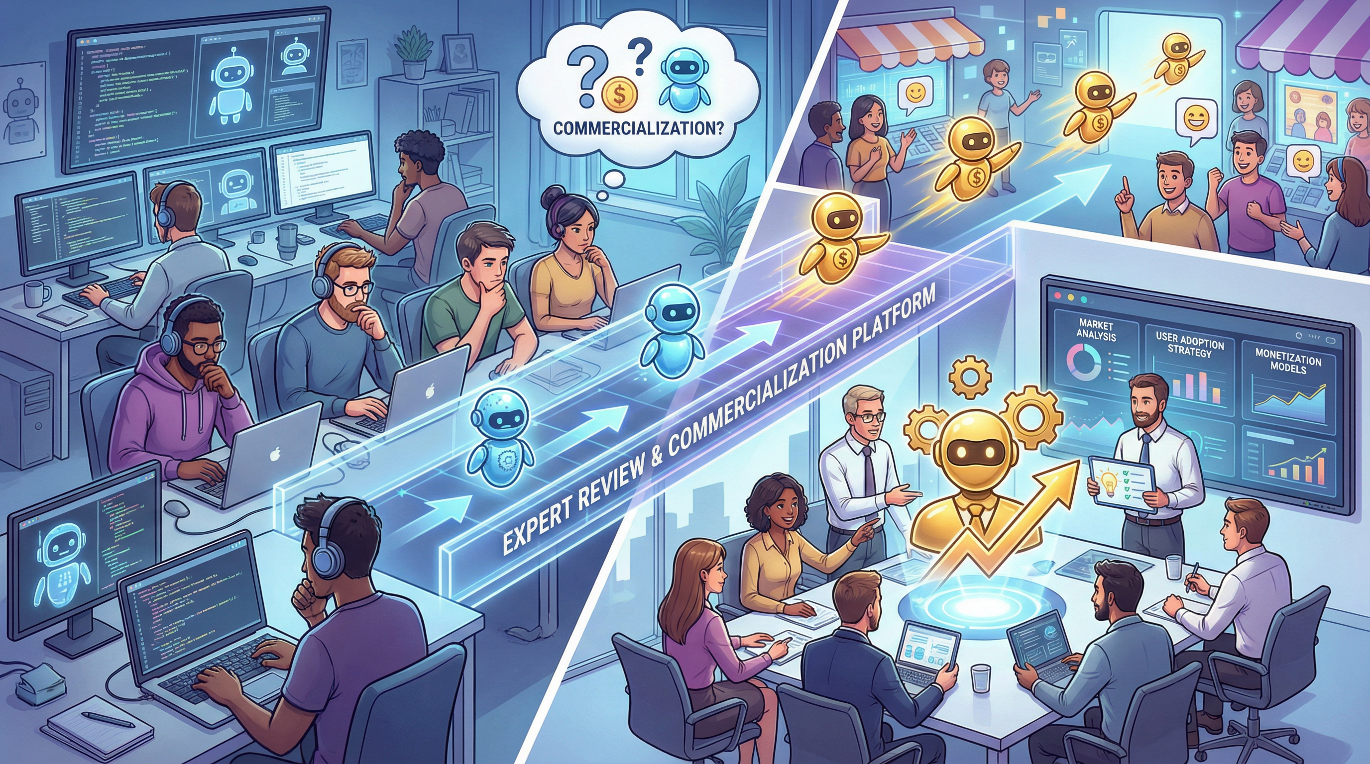 - Agent monetization: Turn your agent into a product with our automated assessment system and commercial guidance.